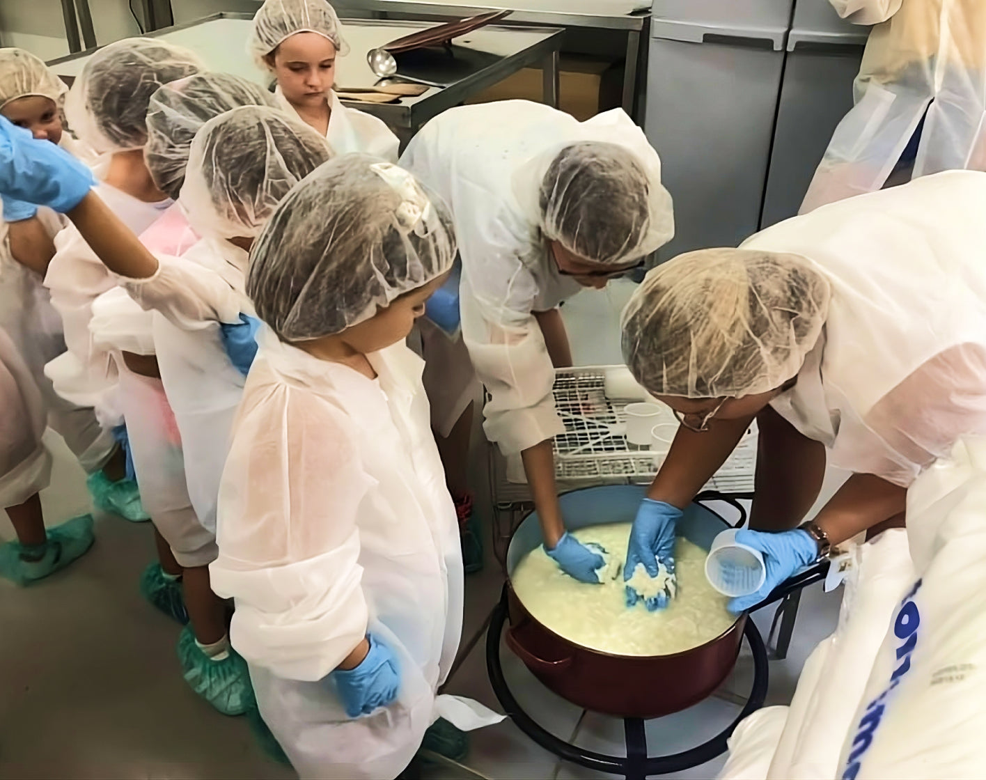 En la parte práctica, haremos un taller de elaboración de queso, cada niño hará su propio queso y conocerá de primera mano la textura que tiene, así, cada uno podrá sentirse como un auténtico maestro quesero.